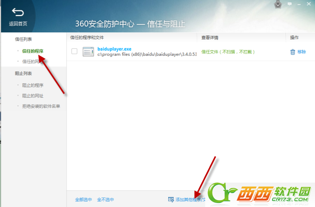 3、点击信任列表,并且添加信任的文件