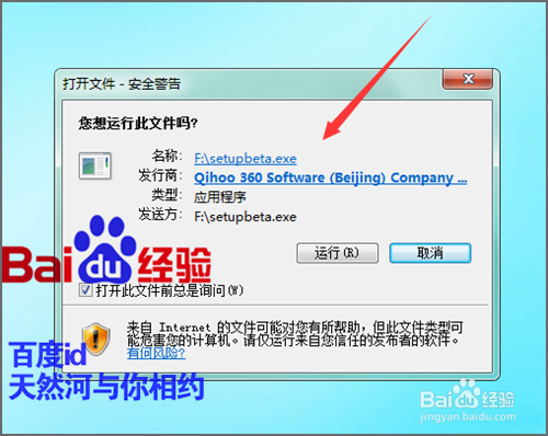 下载好之后,我们打开它的文件夹,双击打开下载的应用程序。可以看到它会弹出一个安全警告的提示框。因为知道所下载的是安全卫士的应用程序,点击运行。