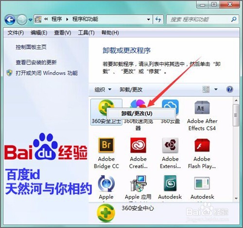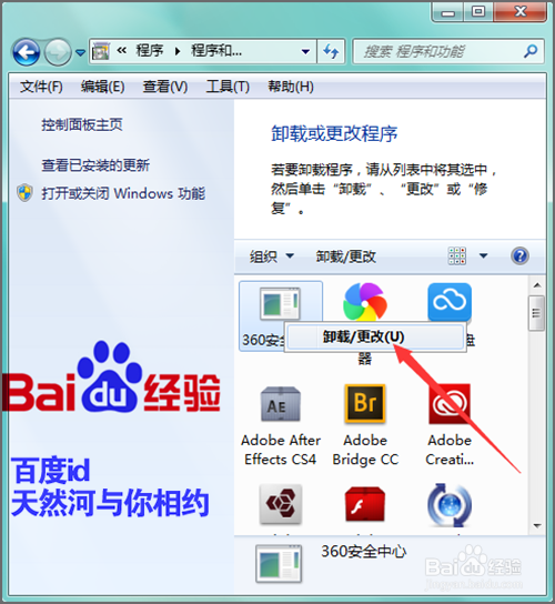 软件安装完成之后,我们再回到程序中的卸载程序界面,这时候在安全卫士的图标上点击右键,点击卸载,就可以弹出一个卸载的界面。如果我们不需要这个软件的话,就可以把这个软件进行一个卸载。