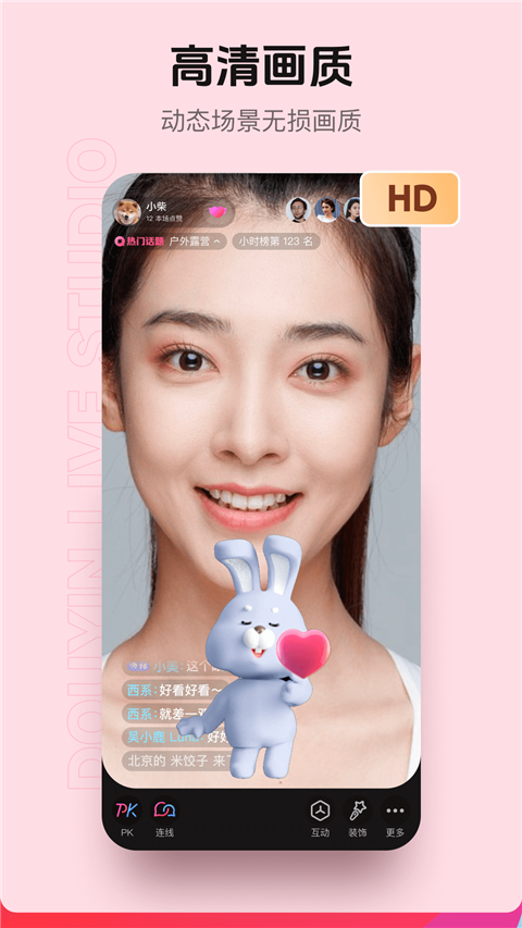 本应用还支持各种互动玩法,与粉丝亲密互动,为用户提供高性能、高画质的专业开播能力,免去输入推流码的烦恼,一键开启直播,快捷高效。下载抖音直播伴侣app,开启你的网红之路吧!