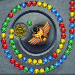 2.点击屏幕发射珠子,沿着轨道匹配三个或三个以上相同颜色的珠子,阻止轨道上的球掉进吞口洞中。