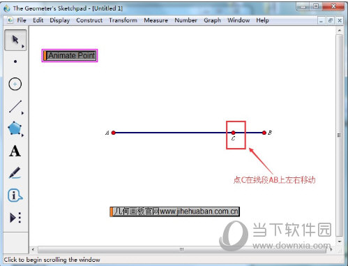 最后用鼠标单击动画点操作按钮,就可以看到点C在在线段AB上左右移动的动画,这样就实现了利用动作按钮制作动画的方法。