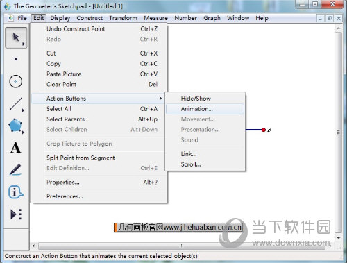 用移动工具选中点C,执行“编辑”——“操作类按钮”——“动画”命令,如下图所示.。