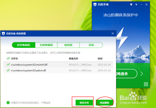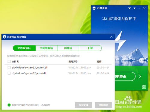 (在使用百度杀毒查杀病毒后,会将删除的病毒文件备份)